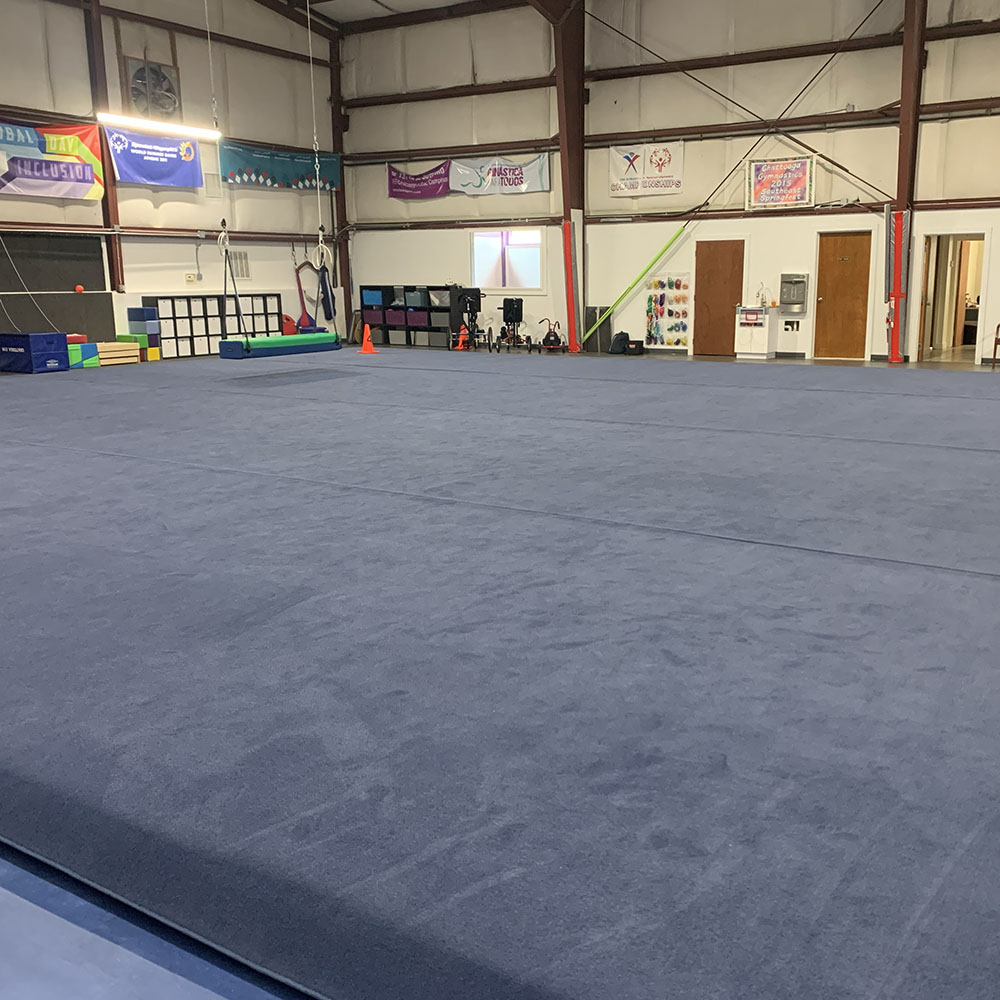 Our track around the spring floor allows for easy accessibility to the entire gym, as well as provides a place for bikes, riding toys, walkers and gait trainers.